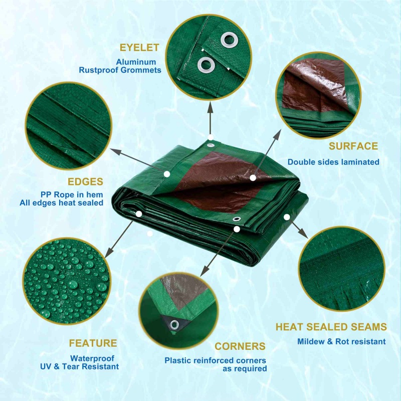 8'x10' 110GSM مشمع وقاية من البولي إيثيلين باللون البني والأخضر لحماية الغطاء