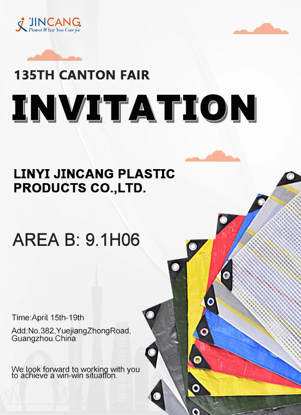 بصفتنا شركة رائدة في شركة Linyi Jincang Plastic Products Co Ltd ، سنحضر معرض كانتون 135 من 15 إلى 19 أبريل في Guznghou ، الصين. نعلم أنك تعمل في مجال Pe tapaulin ، ندعوك بحرارة لزيارة Booth H06،9.1 منطقة ب.